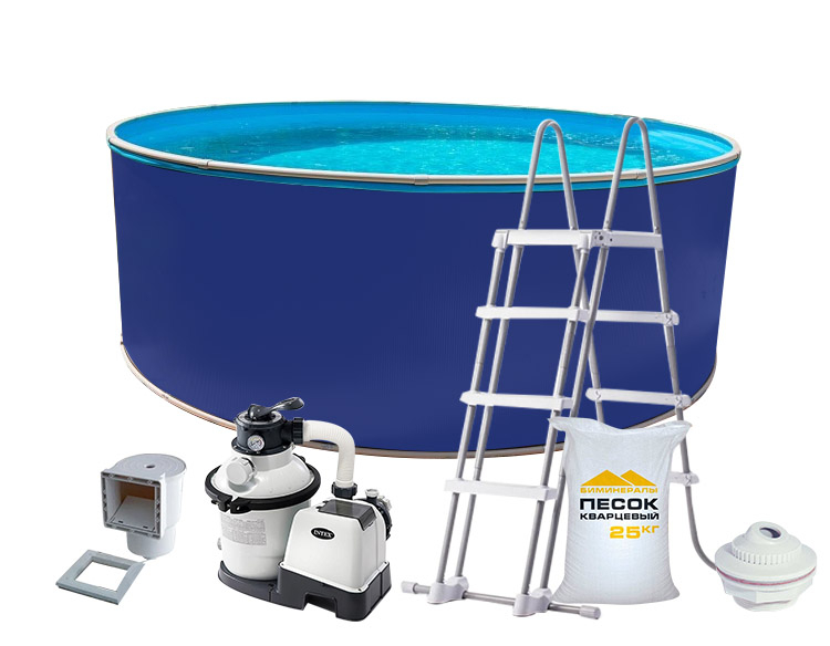 Бассейн Лагуна морозоустойчивый 3.05х1.25м круглый синий (песчаный фильтр, лесница, кварцевый песок, скиммер, форсунка) 30517-02