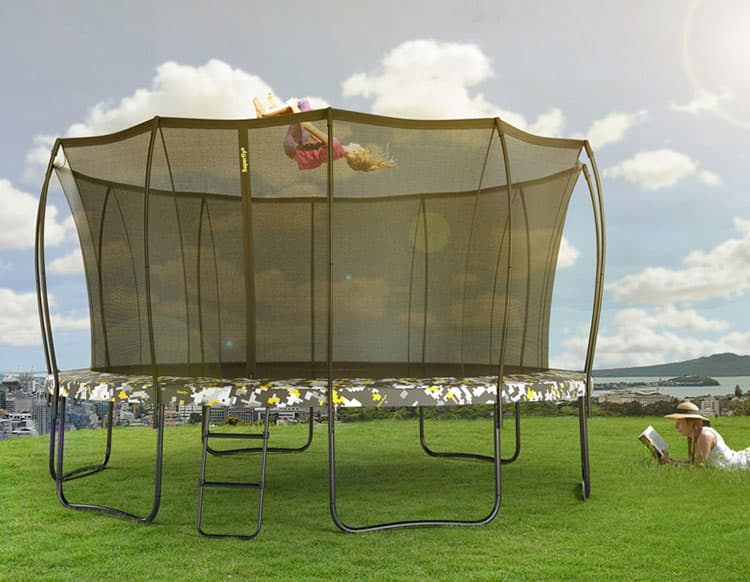 Безопасность с Max-Lock. Благодаря инновационному креплению защитной сетки к прыжковому полотну, была достигнута максимальная защита от попадания в пружинный блок при падении.