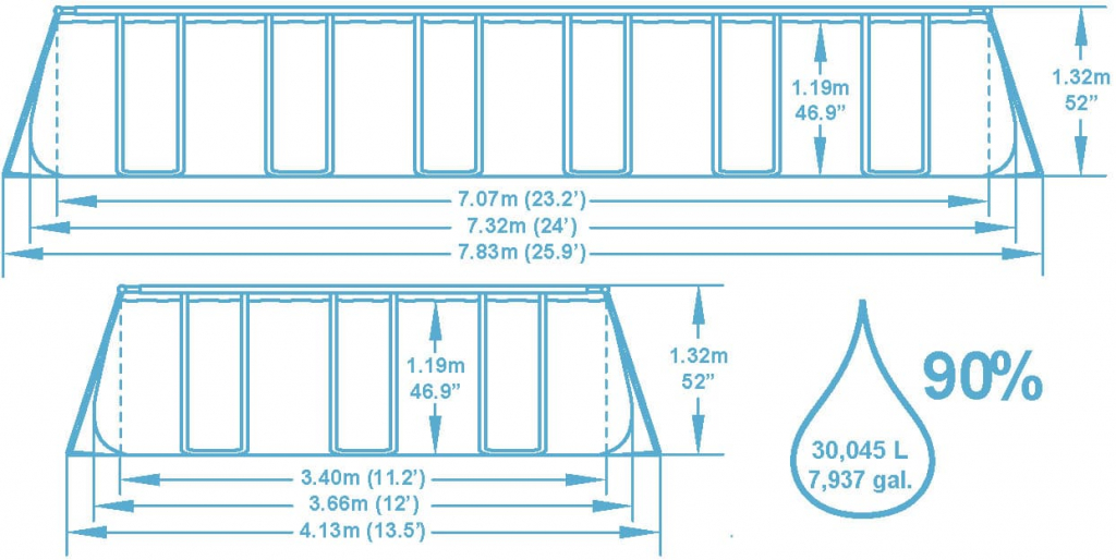Отзывы к товару "Каркасный бассейн Bestway 56474 732х366х132 Rectangular Power Steel Frame":